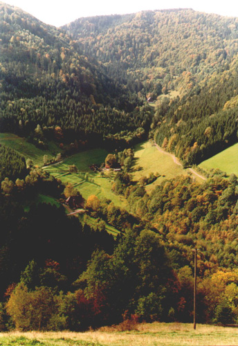 Unsere Tour startet in dem idyllischen Ort Titisee am See (Hochschwarzwald). Die Strecke führt über die Landstraße durch die Ortschaft Hölzlbruck oder alternativ über die gut und breit ausgebaute Bundesstraße (B 31) zunächst nach Titisee-Neustadt. Von dort fahren wir nach Nordosten Richtung Vöhrenbach auf einer gut ausgebauten aber nicht übermäßig breiten Straße. Sieben Kilometer hinter Titisee-Neustadt erreichen wir Eisenbach (Hochschwarzwald) eine kleine, 2300 Einwohner zählende Gemeinde mit idyllischen Schwarzwald-Häusern. Unsere Fahrt durch sonnendurch-flutete Wälder führt über Hammereisenbach, entlang dem Lauf der Breg nach Vöhrenbach. Wir sind jetzt gut 30 Minuten unterwegs und an einen Stop verschwenden wir noch keine Gedanken. Die weitere Route führt uns von Vöhrenbach in die Ortschaft Furtwangen. Furtwangen liegt - wie Vöhrenbach - an der Deutschen Uhrenstraße und erlangte durch das dort ansässige Deutsche Uhrenmuseum Weltberühmtheit. In diesem Museum ist die größte und umfassendste Sammlung Schwarzwälder Uhren beheimatet. Neben einer Vielzahl weiterer Sehenswürdigkeiten in Furtwangen, lohnt sich ein Besuch in diesem Museum immer. Von Furtwangen geht es zunächst weiter, in südwestlicher Richtung über die B 500. Vielen Schwarzwald-Tourern ist das nördlich gelegenere Teilstück der B 500 zwischen Baden-Baden und Alexander-schanze als Schwarzwald-Hochstraße wohl bekannt. Wir verlassen die B 500 jedoch bereits wieder nach gut zwei Kilometern und biegen nach rechts in Richtung Gütenbach ins Simonswäldertal ab. Nach wenigen Kurven erreichen wir Gütenbach im Schwarzwald. Der eine oder der andere (ehemalige) Modelleisenbahner erinnert sich sicherlich noch gut an die Modellhäuser der Firma Faller. Diese häufig an den Häusermotiven des Schwarzwaldes angelehnten Miniaturmo-delle stammen wie die Fallers aus Gütenbach. Von Gütenbach geht es - zunächst recht kurvenreich - hinab ins Simonswäldertal. Die Straße ist nicht übermäßig breit aber gut ausgebaut. Die Bäume stehen dicht zusammen und es duftet herrlich nach frischem Moos. Ein paar Kurven weiter brummen Motorsägen im Wald. Bei einem den örtlichen Gegebenheiten und den Straßenverhältnis-sen angemessenem Fahrtempo sind wir nun gut eine Stunde (ohne Museumsauf-enthalt) unterwegs und legen am „Drei-Täler-Blick“ einen Stop ein, um die herrliche Aussicht auf Wildgutach, Zweribach und Obersimonswald (siehe Foto) zu genießen.